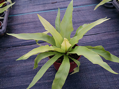 株高通常60–120厘米,根状茎短粗,叶片丛生呈漏斗状,革质光滑,叶色翠绿带光泽,幼叶常卷曲。野生环境下多附生于热带雨林的树干或岩石上,依靠“巢”状结构收集落叶、雨水转化为养分。